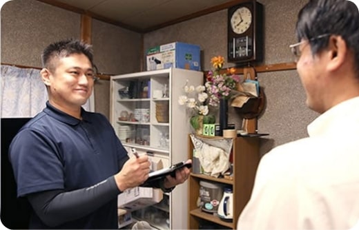 お電話などでご依頼内容を確認後、ゴミ屋敷専門パートナーズのスタッフがご希望日に現地無料お見積りに伺って詳細なお見積りをご提示します。お急ぎの場合はその日のうちに訪問することも可能ですよ。買取希望の不用品がある場合は買取査定も実施します。