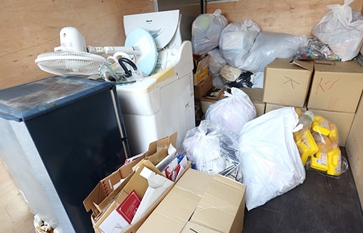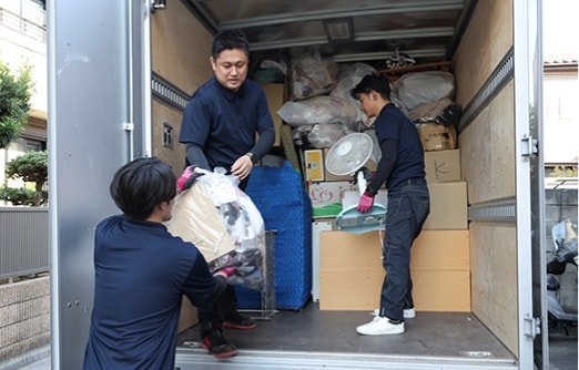 パートナーズのゴミ屋敷片付け・汚部屋片付けでは、貴重品類を探索しながら不用品をリユース・リサイクル可能なもの、廃棄するものなどに手早く仕分けます。仕分け後は回収する不用品を速やかに搬出してトラックに積み込みます。