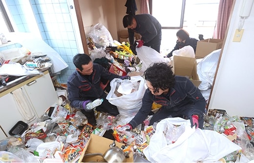ゴミ屋敷化したお住まいの生前整理や遺品整理もお任せいただけます。大阪のゴミ屋敷専門パートナーズの遺品整理ではマナーを心得た遺品整理士が中心となって丁寧に整理するので安心ですよ。