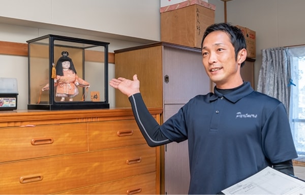 お電話などでご依頼内容を確認後、ゴミ屋敷専門パートナーズのスタッフがご希望日に現地無料お見積りに伺って詳細なお見積りをご提示します。お急ぎの場合はその日のうちに訪問することも可能ですよ。買取希望の不用品がある場合は買取査定も実施します。