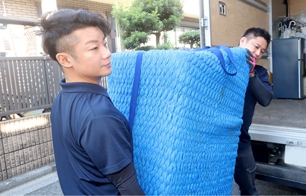 ゴミ屋敷・汚部屋にある不用品は基本的に白いポリ袋に詰めて搬出します。水漏れしそうなものはプラスチック製のケースに入れて運ぶなど万全に対策しているので建物を汚しませんよ。重たい家財もプロの搬出テクニックで安全に運び出します。万が一に備えて損害保険にも加入済みですよ。