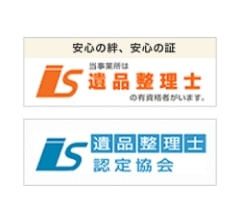 遺品整理士は遺品整理士認定協会が付与している資格です。有資格者は、法令規制を熟知し、ご遺品の正しい取扱い手順や方法を習得しており、ご遺族様に代わって心を込めて整理することができます。