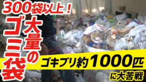 40代女性からのご依頼【1LDKにゴミ袋300袋以上】食べ残し飲み残しが多く大量の虫と格闘しながらのお片付け動画になります。