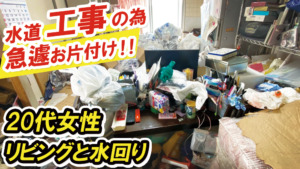 20代女性のご依頼【依頼者様のインタビュー有】水道工事の為、急遽母親と二人で暮らすリビングと水回りのお片付けをご依頼いただきました![ スタッフ5名 7時間作業 回収 ・ お片付け ]