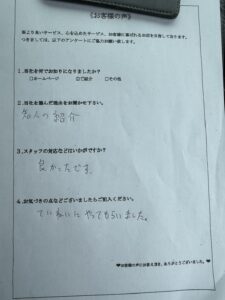 作業後には『とても丁寧で大変助かりました。』とお褒めのお言葉を頂きました。