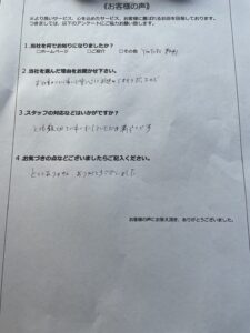 作業完了後には、『実際の作業でもスタッフの方々にとても親切丁寧に対応していただきました。探していた物も見つけていただきとても助かりました。』とご満足頂けました。