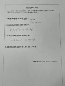 作業完了後には、『YouTubeを見て対応が良さそうだと感じ依頼しました。』と、スタッフの対応にもとても喜んでいただきました。