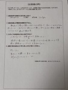 作業後にはお客様から「元々YouTubeで丁寧な作業をされているのを拝見して、安心してお任せ出来る思っていましたが、想像以上でした!パートナーズさんにお願いして本当に良かったです。」とお褒めの言葉を頂き、大変嬉しく思いました。