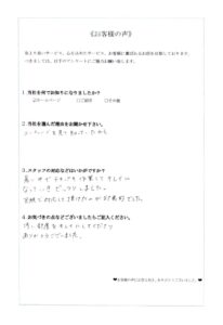 笑顔で対応して頂けたのが印象的でした。 - Qお気付きの点がございましたらご記入下さい。