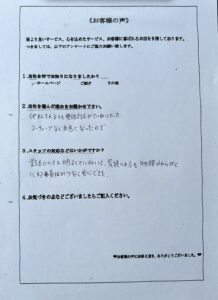 - A電話の方も明るく丁寧で、見積りの方も物腰やわらかく心的負担が少なく安心できた。