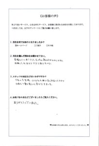 『頼んでいない事も親切に聞いて下さり満足の対応でした』