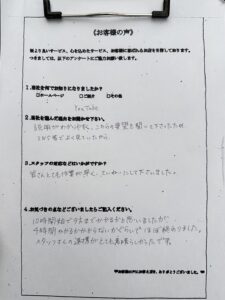 - A皆さんとても作業が早く、丁寧にしてくださいました。