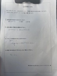 今回、見積もりや作業中にお客様とお話しさせていただいた上で、