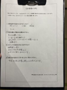 即日見積もりも助かったし、対応も良かったとのことでご依頼いただきました。