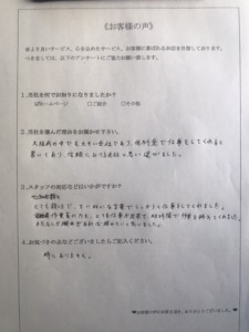 素早く作業をして下さり、値引きまでして頂き、本当に感謝です。』