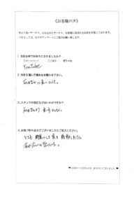 作業後お客様からは『仕事が早く対応もテキパキとしていて良かったです』