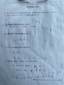 金庫の片付け有難かった。 - Qお気付きの点がございましたらご記入下さい。