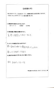 作業後お客様からは『丁寧かつ手早い作業で安心して見ていることができました』