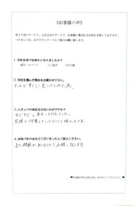 『素早い対応と聞き、申し込んだところすぐに来ていただいた』