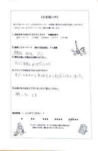 作業後お客様からは『短時間で作業が終了して助かりました。