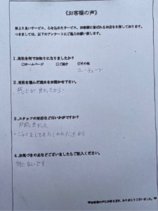ご依頼者様の娘様が当社のYouTubeを見て下っており、