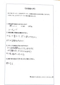 『頼んでいない事も親切に聞いて下さり満足の対応でした』