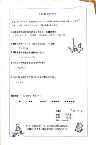 『掃除までフォローして頂いた事に大変感銘をおぼえた』