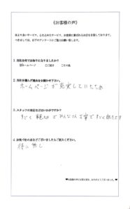 『頼んでいない事も親切に聞いて下さり満足の対応でした』