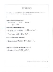 ・You Tube を見て選びました。 - Qスタッフの対応はいかがでしたか?