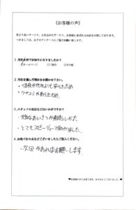 ・とてもスピーディーで助かりました。 - Qお気付きの点がございましたらご記入下さい。