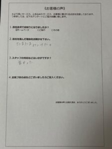 作業後には「とても丁寧な作業をしていただきました。ありがとうございます。」と感謝のお言葉をいただきました。