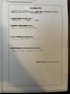 作業完了後には『一つ一つ丁寧に作業していただいた』と、とても喜んでいただきました。