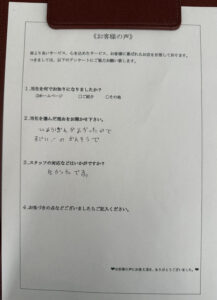 作業後には『凄いでいっぱい。』とお褒めのお言葉を頂きました。