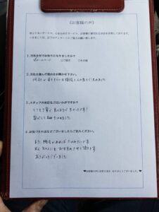 作業後には『スタッフの梅渓さんもとても良くスタッフ皆さん丁寧な作業で助かりました。』とお褒めのお言葉を頂きました。