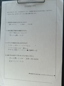 マンションの5階でした最後には外回りの清掃までして下さり、感謝します。 - Qお気付きの点がございましたらご記入下さい。