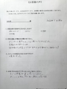 金額の安さに満足頂き、当日に作業をさせて頂きました。
