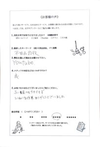 『電話から作業までの素早い対応と費用の相談にも乗ってもらえて良かったです』
