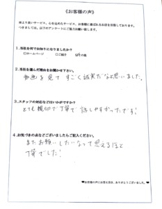 最後にお客様からは『とても親切で丁寧で話しやすかったです。またお願いしたいと思いました』とのお言葉をいただきました。当社ではお客様に期待以上のサービスを提供できるよう日々努めてまいります。