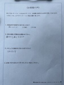 お見積もりが安くとても丁寧でスムーズだったと言う事で今回ご依頼して頂きました。