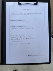 作業後には『親切でとても優しくテキパキでYouTube通りでした。』とお褒めのお言葉を頂きました。