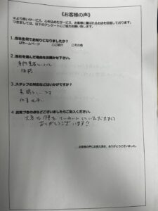 お客様からは「専門業者ということで作業も早く、対応も素晴らしかったです。」と、嬉しいお言葉をいただくことができました。