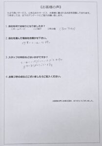 作業後には、「丁寧に対応していただき本当にありがとうございます。」と感謝のお言葉をいただきました。