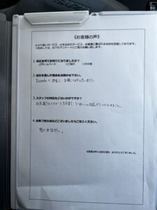 お客様からは、「お見積もりから作業当日まで丁寧に対応していただきました。」とスタッフの対応にも満足していただけました。