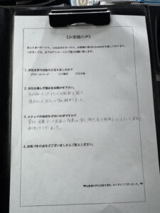 作業後には『値段も安くしてもらい礼儀も正しく本当に助かりました。』とお褒めのお言葉を頂きました。