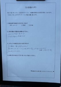 口コミがすごく良く親切で迅速な対応だったという事で今回ご依頼して頂きました。