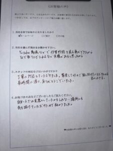 作業後には『自分が見れていない部分まで整理してくれて助かった。スタッフさんも気さくに話かけてくれた。』とお褒めのお言葉を頂きました。