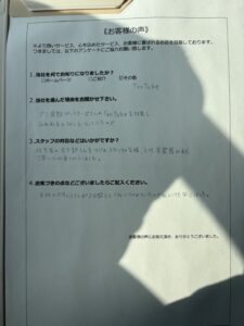 当日は一戸建ての一部屋を2トンショート車1台、作業員5名、4時間での作業にて、娘さんが帰宅するためのお部屋の整理をご依頼いただきました。1人では手が付けられない量のお荷物があるとのことで、今回お手伝いさせていただきました。作業中は丁寧な対応を心掛け、不要なお荷物をすべて運びだした後サービスとして床を拭き掃除し、お客様にとても満足していただけました。感謝の言葉をいただき、今後も何かあった際はお力になれればと思います。