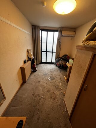 アパート2階、ワンルームのお部屋を作業員5名、4時間の作業、2トントラック3台分の回収をおこないました。