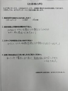 片付け終えた後、「残しダンボールの中から不用な物が出て来たらまた依頼したい」と言っていただけました。またスタッフの対応にも好感をもってくれとても嬉しく思います。