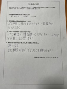 きれいにしていただいて、とてもよかったと思います! - Qお気付きの点がございましたらご記入下さい。